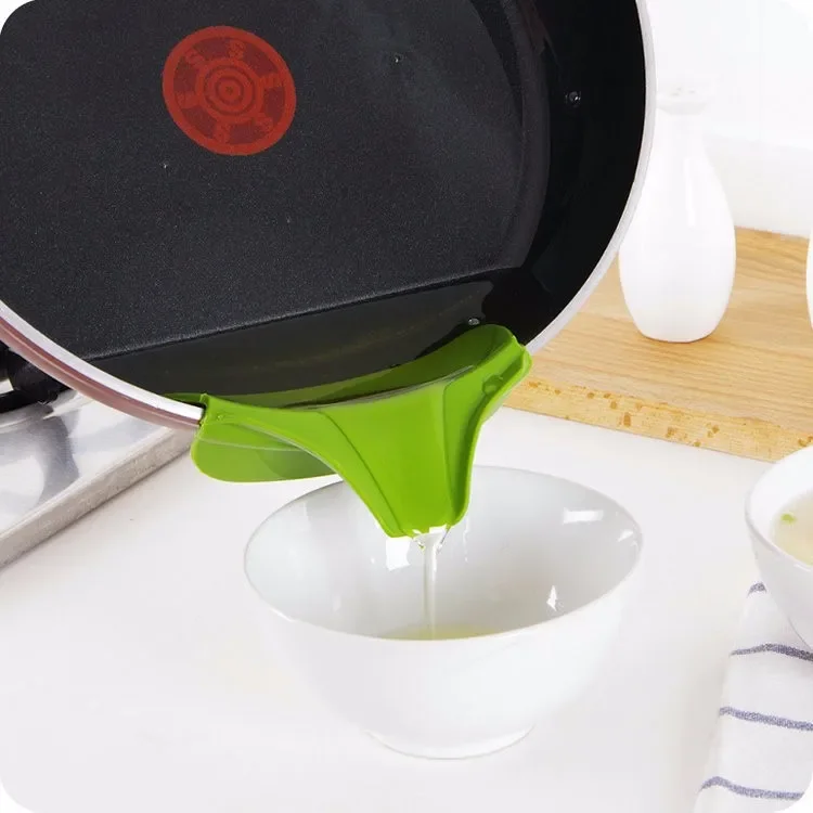 This Creative Silicone Liquid Funnel is a flexible, anti-spill kitchen tool designed to make pouring liquids (soup, sauce, batter, oil) mess-free from pots, pans, bowls, or jars. Its silicone construction allows it to fit securely on various container edges, preventing drips and spills.